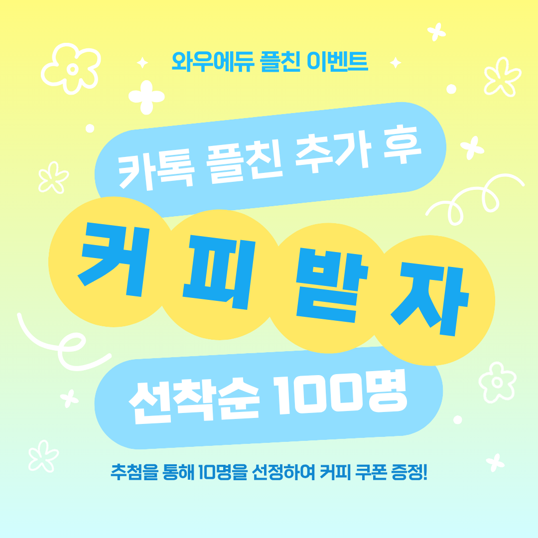 📢 ¿Í¿ì¿¡µà īī¿ÀÅå ÇÃÄ£ Ãß°¡ À̺¥Æ® ¾È³» ¾È³çÇϼ¼¿ä. The ½±°Ô, The ºü¸£°Ô ´Ü±â ÇÕ°ÝÀÇ ±æÀ» ¿´Ù, ¿Í¿ì¿¡µàÀÔ´Ï´Ù. ¿Í¿ì¿¡µàÀÇ ¼Ò½ÄÀ» ´õ¿í ºü¸£°Ô ¹Þ¾Æº¸½Ç ¼ö ÀÖµµ·Ï īī¿ÀÅå Ç÷¯½ºÄ£±¸ Ãß°¡ À̺¥Æ®¸¦ ÁøÇàÇÕ´Ï´Ù. Áö±Ý '¿Í¿ì¿¡µà' īī¿ÀÅå ä³ÎÀ» Ä£±¸ Ãß°¡ÇÏ¸é ¼±Âø¼ø 100ºÐ²² Ä¿ÇÇ ÄíÆùÀ» ¼±¹°·Î µå¸³´Ï´Ù! ☕ Ãß÷À» ÅëÇÏ¿© Ãß°¡·Î 10ºÐ ´õ ¼±Á¤ÇÏ¿© ¼±¹°À» µå¸± ¿¹Á¤ÀÔ´Ï´Ù! ¿©·¯ºÐµéÀÇ ¸¹Àº Âü¿© ¹Ù¶ø´Ï´Ù :) 🎉À̺¥Æ® ¾È³» À̺¥Æ® ±â°£ • 2026³â 3¿ù 16ÀÏ(¿ù)-3¿ù 31ÀÏ(È) ´ç÷ Àοø • ¼±Âø¼ø 100¸í +Ãß÷ 10¸í °æÇ° Áö±ÞÀÏ • 2026³â 4¿ù 3ÀÏ(±Ý) Àϰý Áö±Þ À̺¥Æ® °æÇ° • Ä¿ÇÇ ±âÇÁƼÄÜ 📌 Âü¿© ¹æ¹ý 1️⃣ īī¿ÀÅå¿¡¼ '¿Í¿ì¿¡µà' °Ë»ö or ¾Æ·¡ īī¿ÀÅå ä³Î ¸µÅ© Ŭ¸¯ 2️⃣ +ch¹öư ´·¯ ä³ÎÃß°¡ 3️⃣ ¾Æ·¡ Âü¿© ¸µÅ© Ŭ¸¯ 4️⃣±¸±ÛÆû ÀÛ¼º ÈÄ ±âÇÁƼÄÜ ¹Þ±â! īī¿ÀÅå ¡®¿Í¿ì¿¡µà¡¯ ä³Î ¸µÅ© Âü¿©¸µÅ© |