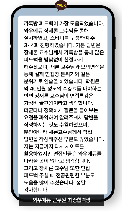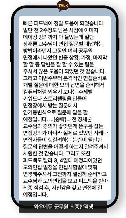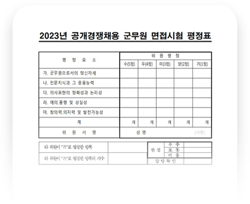 * ±º¹«¿ø ÃÖÁ¾ ÇÕ°ÝÀÚ : ¸éÁ¢ 50% + Çʱâ 50% Á¡¼ö ¼øÀ¸·Î °áÁ¤