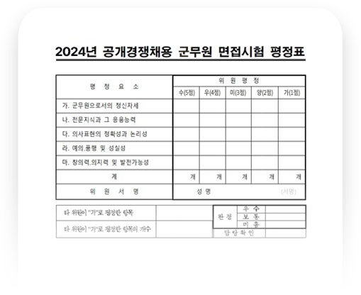 * ±º¹«¿ø ÃÖÁ¾ ÇÕ°ÝÀÚ : ¸éÁ¢ 50% + Çʱâ 50% Á¡¼ö ¼øÀ¸·Î °áÁ¤